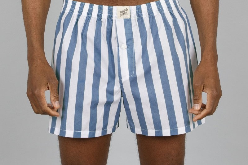 Dieser von den Beach Boys inspirierte Druck zeigt einen klassischen blauen und weißen Streifen.