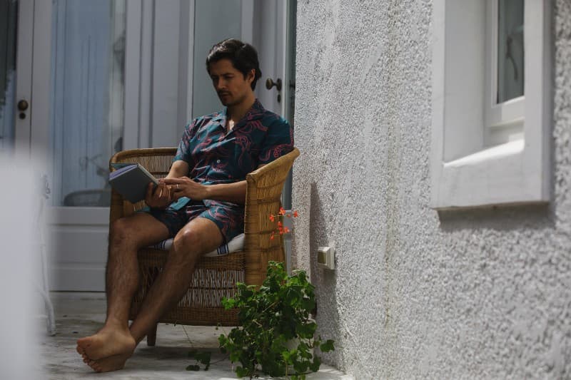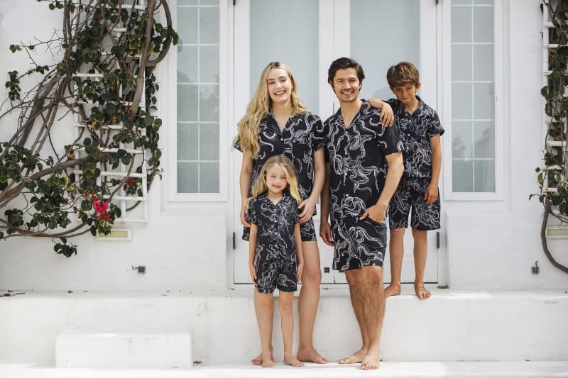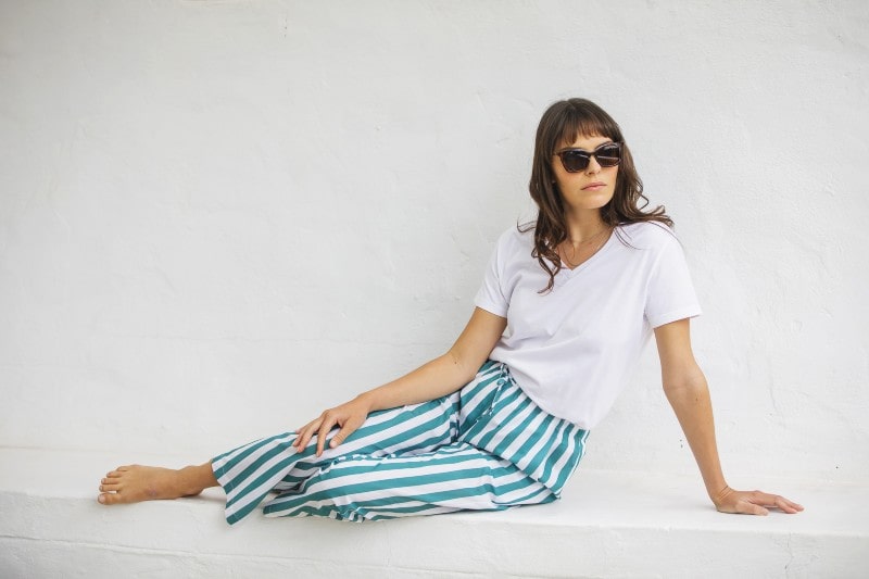 Ein weiterer einfacher, aber eleganter Druck mit handgemalten Palmen auf sandfarbenem Hintergrund.