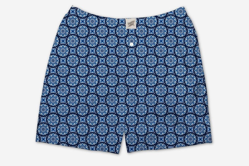 Ein Mandala-Druck in kühlen Blautönen, der in unserem hauseigenen Studio erstellt wurde