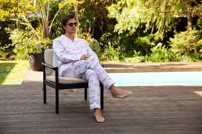 Wahrscheinlich unser beliebtester Druck – rosa Geparden auf weißem Hintergrund für einen modernen afrikanischen Stil.