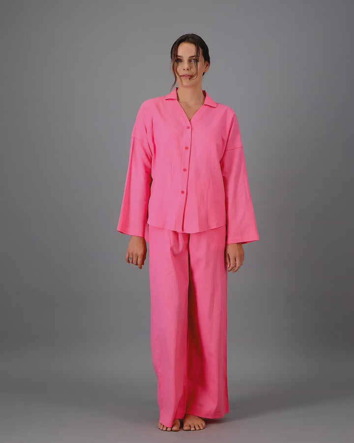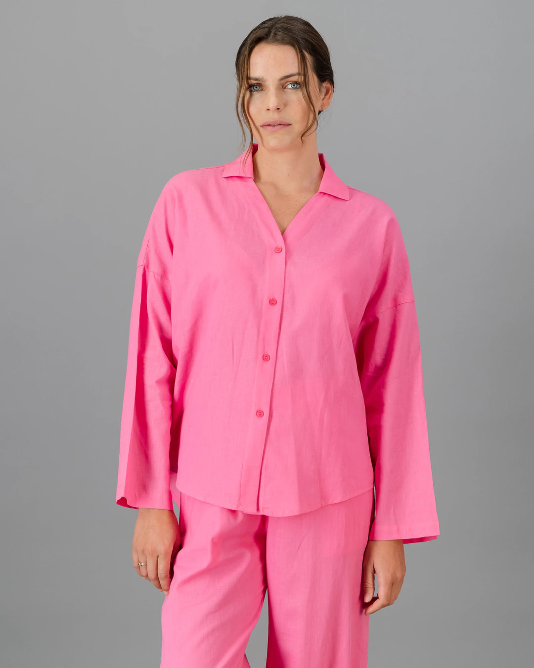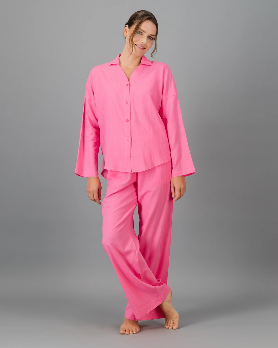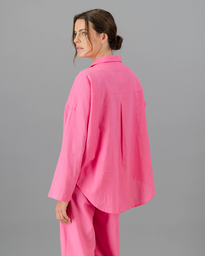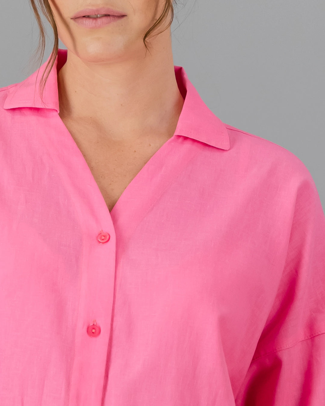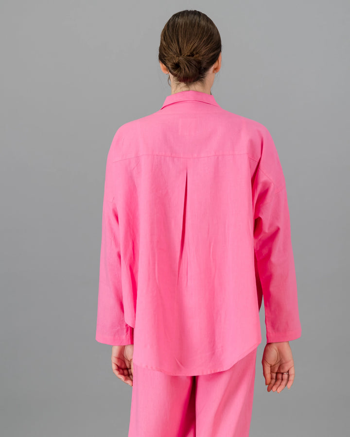 Erleben Sie den Luxus und Komfort unserer rosa Leinenbluse für Damen.