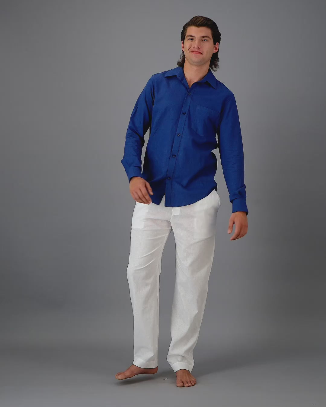 Luxuriöses und luftiges blaues Leinenhemd für Herren.