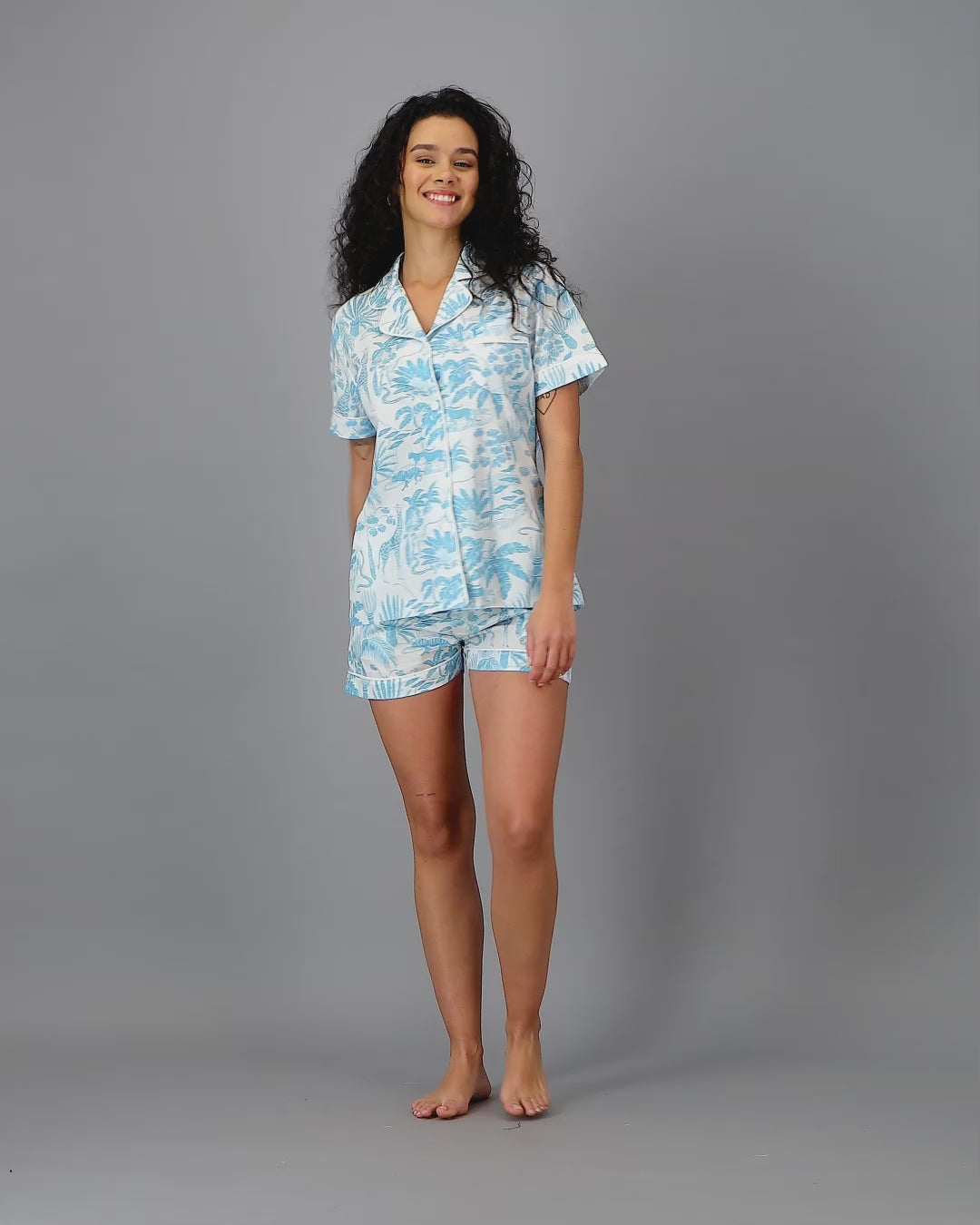 Kurzer Damen-Schlafanzug – Mono Safari Blue