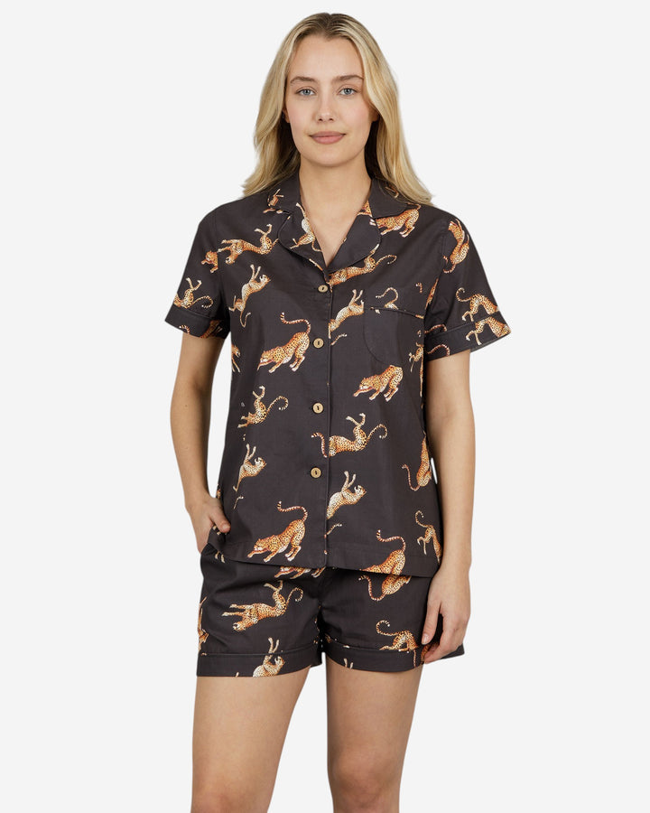 Kurzer Damen-Schlafanzug – Jumping Cheetah