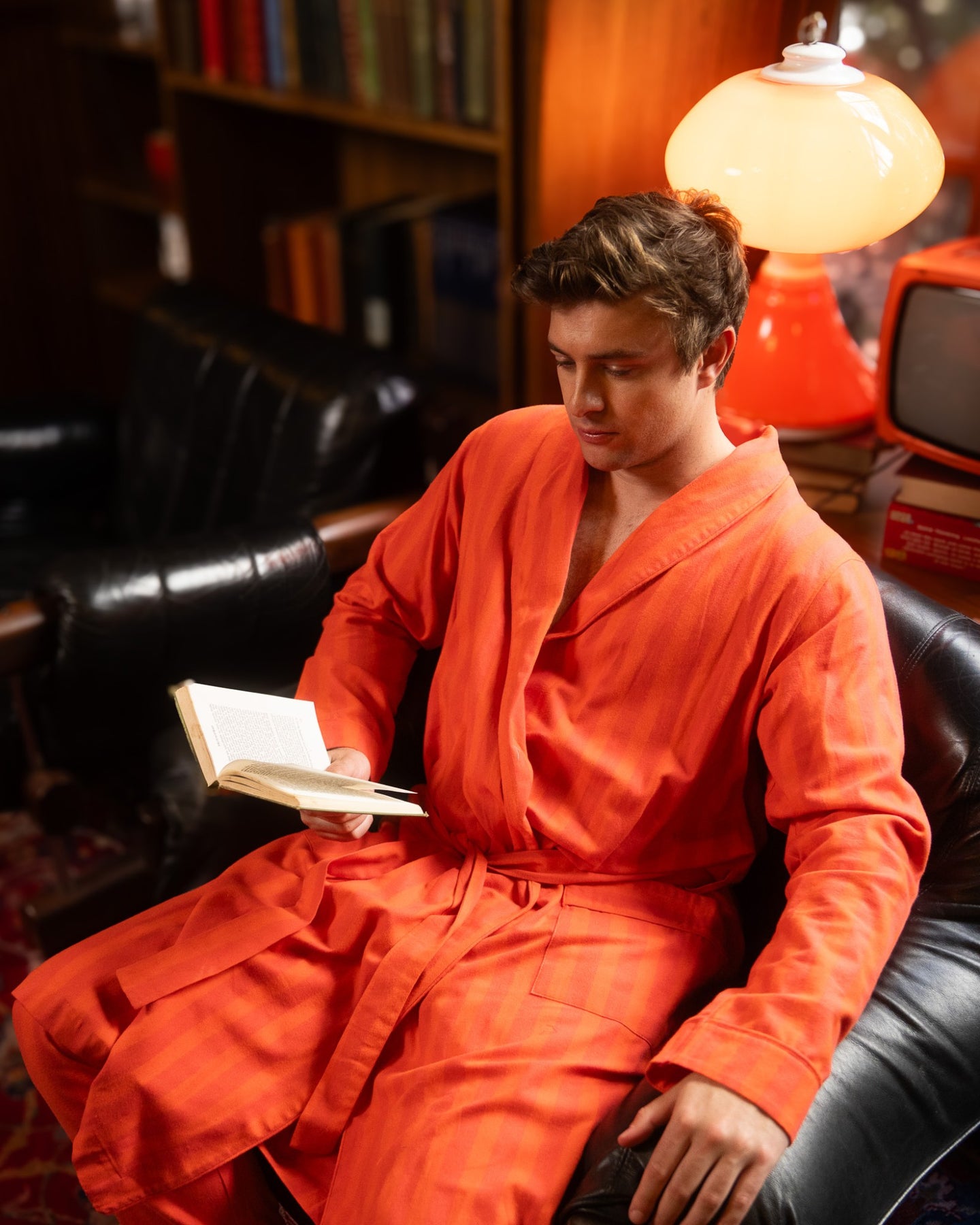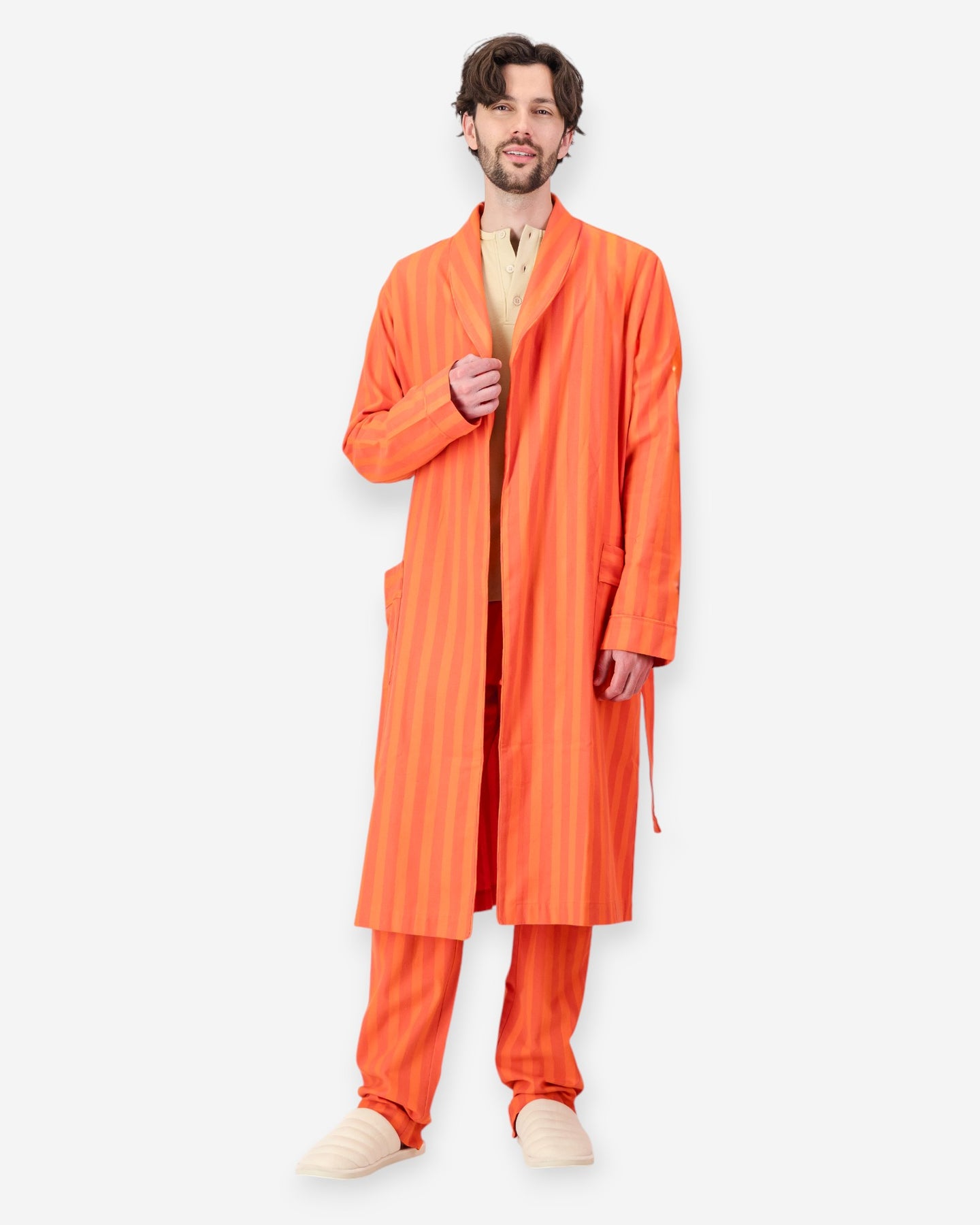 Yoko Red – warm red base with vertical orange stripes creating a clear, refined pattern. A simple, modern flannel design with a sharp, confident look.