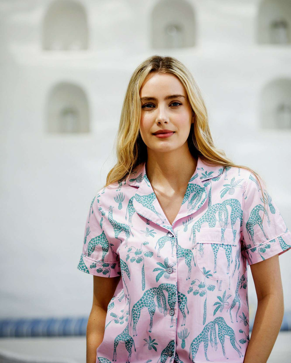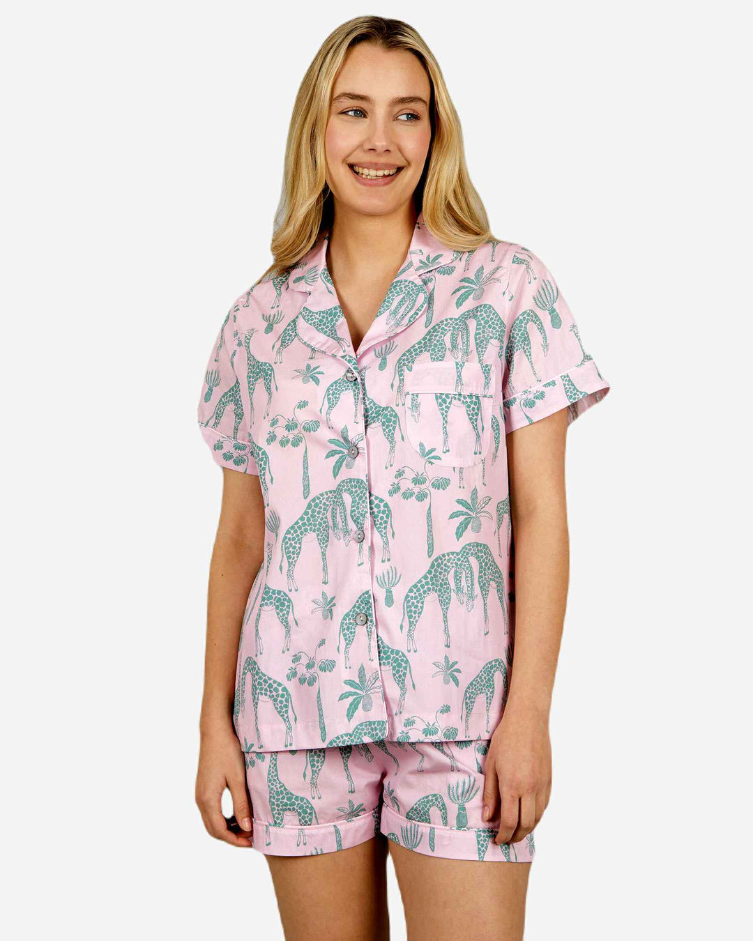 - Pink Giraffes: En rosa bakgrund med gröna giraffer som tillför en lekfull touch till din nattgarderob.