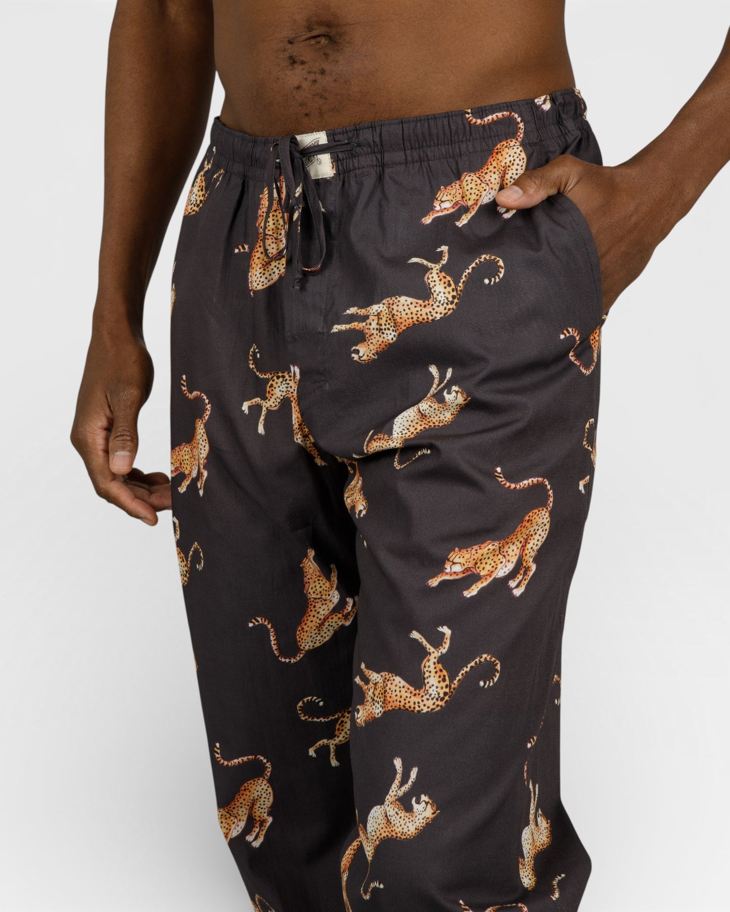 Pyjamasbyxor herr med fickor och mönster av hoppande geparder