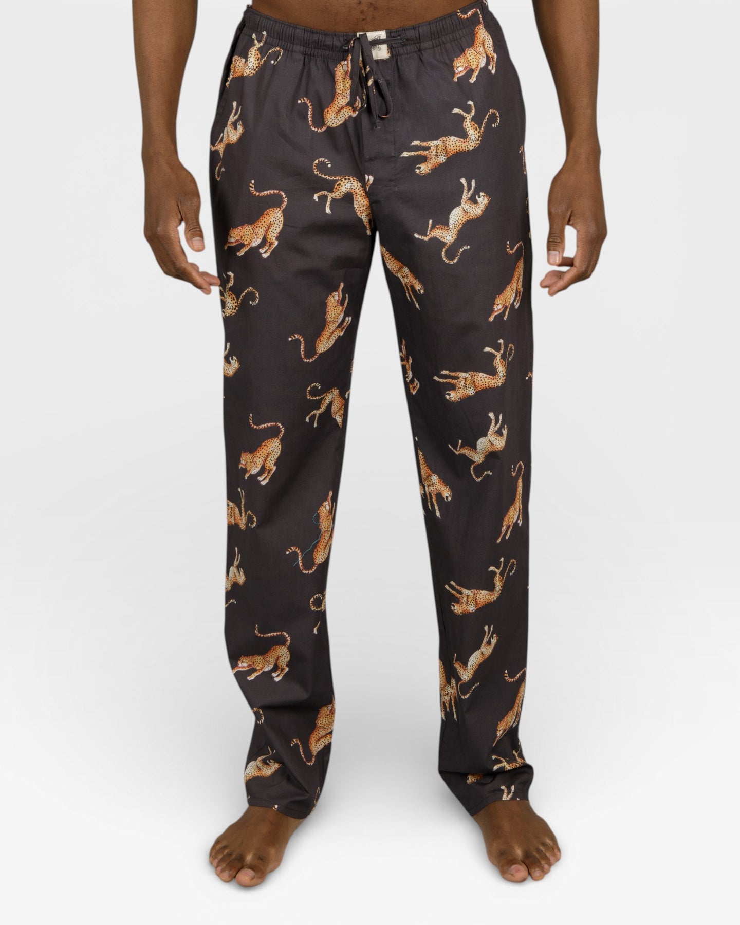 Mens charcoal pyjama with jumping cheetahs