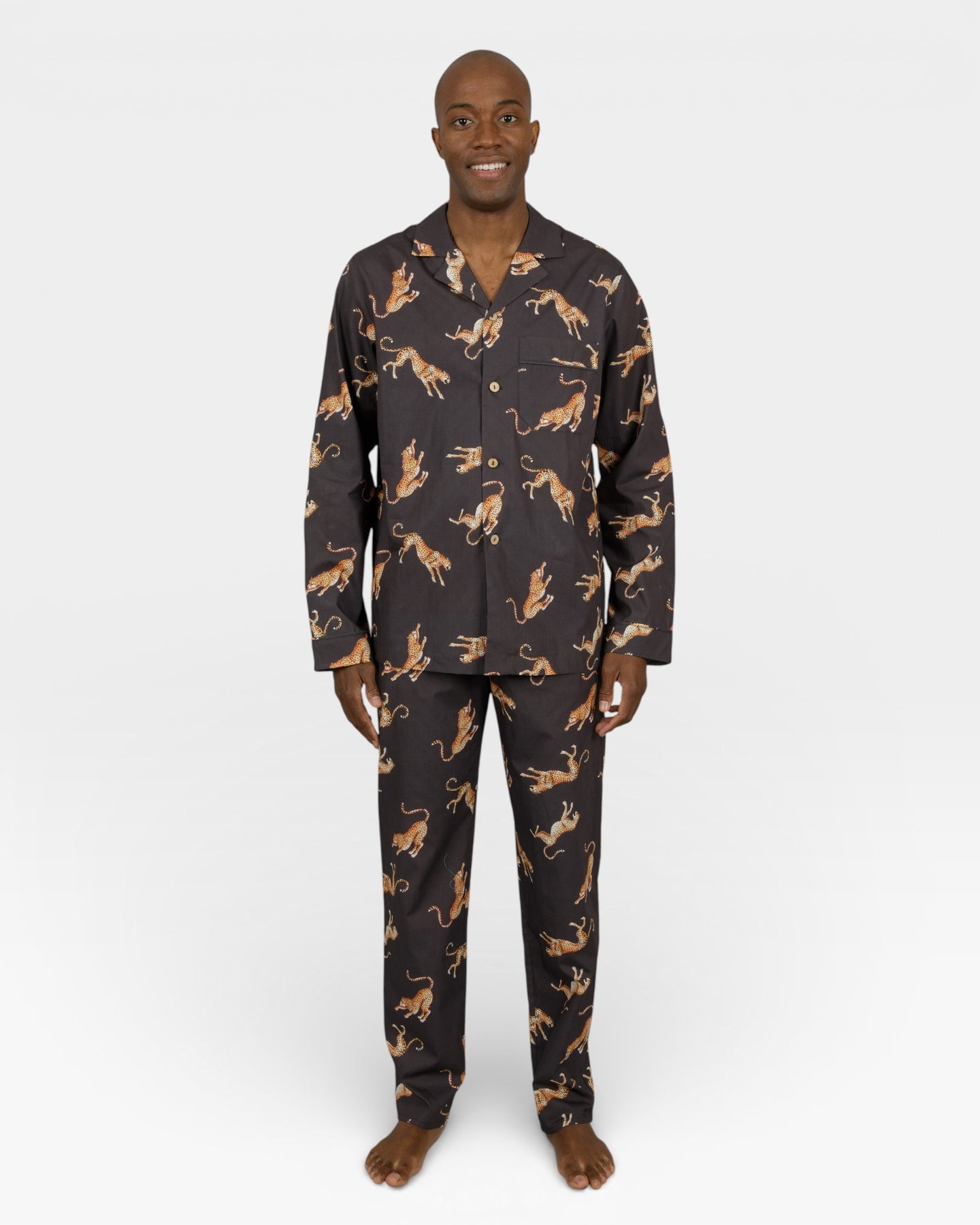 Mönstrad pyjamas herr i bomull med handmålade geparder