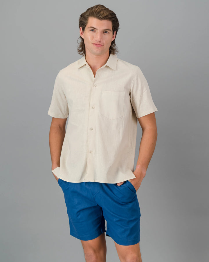 Våra linneshorts är noggrant handgjorda i vår egen lilla fabrik i Kapstaden, med ekologiskt odlad bomull och linne från etiska källor.