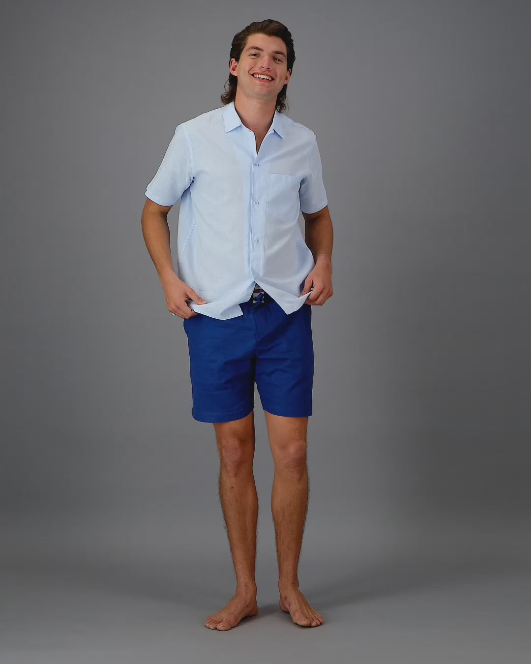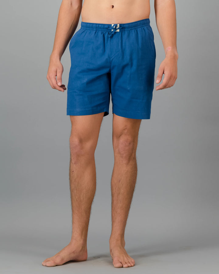 Lyxiga och luftiga blå linneshorts för herr.