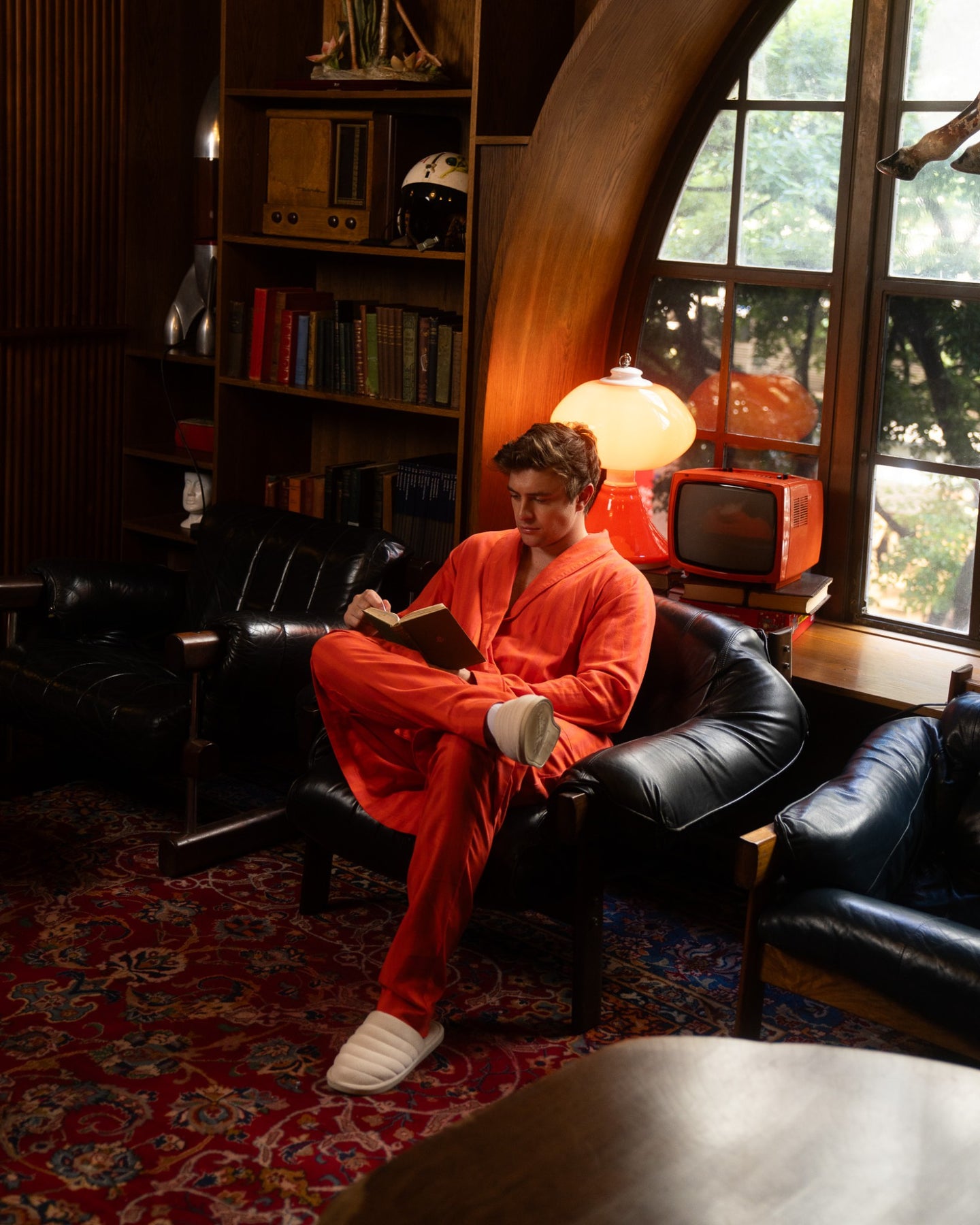 Yoko Red – varm röd bas med vertikala orangea ränder som ger ett tydligt och modernt uttryck. En ren flanellstil med skarp och självsäker känsla.